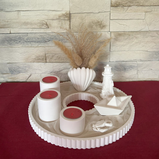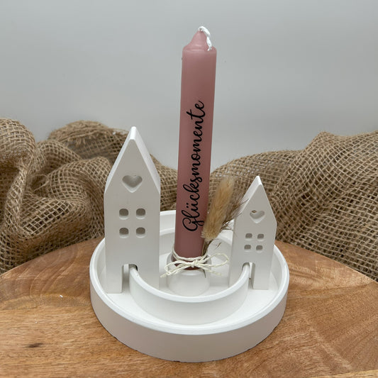 Minimalistische Kerzenhalter-Set mit Gips Häusern