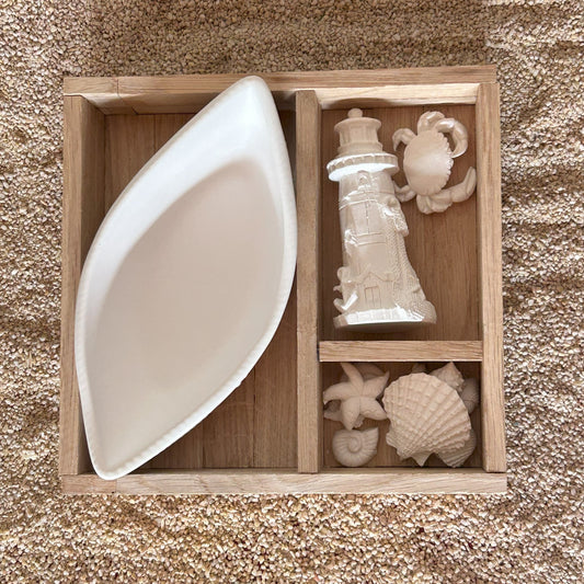 Maritimes Deko Set - Boot, Leuchtturm, Krebs, Muscheln aus Gips