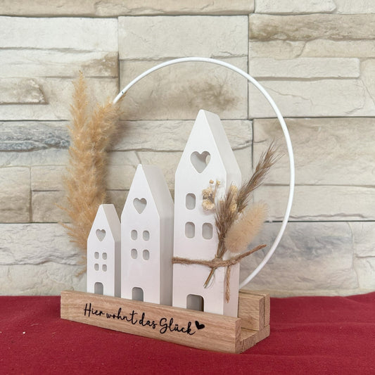 Deko Häuser „Hier wohnt das Glück“
