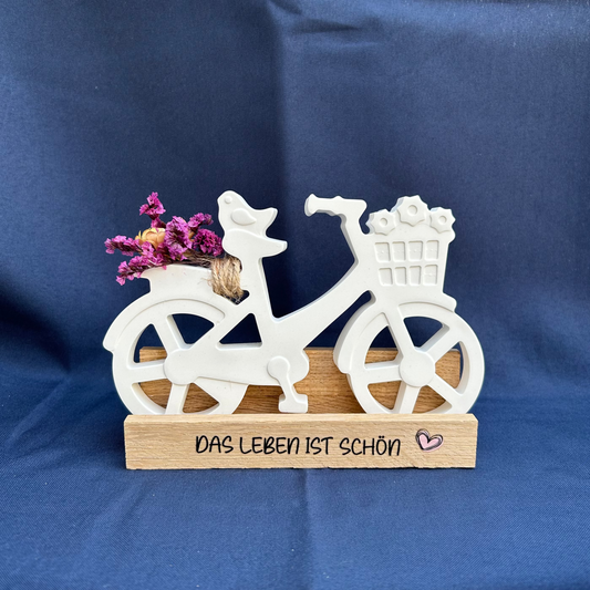 Deko-Fahrrad mit Vogel & Trockenblumen - unterschiedliche Sprüche