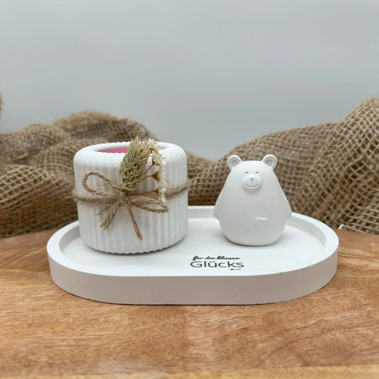 Deko-Set „Glücksmomente“ mit rosa Kerze & Bärchen