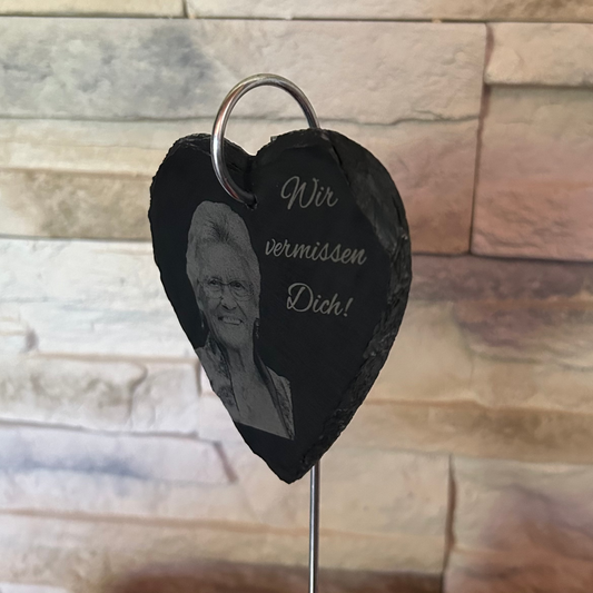 Personalisierbares Herz-Schiefertafel mit Lasergravur „Wir vermissen Dich“
