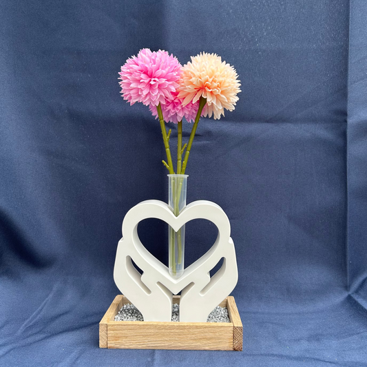 Vasenhalter „Hände formen Herz“ mit Glasröhre