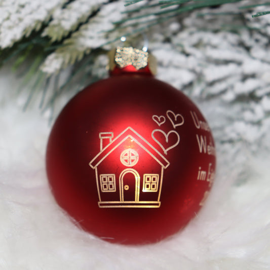 Personalisierte Weihnachtskugel mit Lasergravur „Unser erstes Weihnachten im Eigenheim“