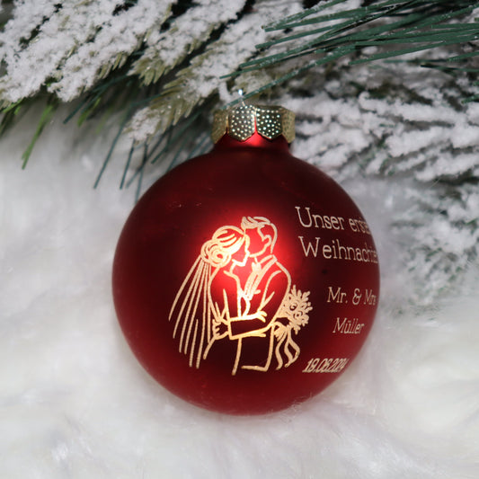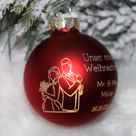 Personalisierte Weihnachtskugel mit Lasergravur „Brautpaar Unser erstes Weihnachten“