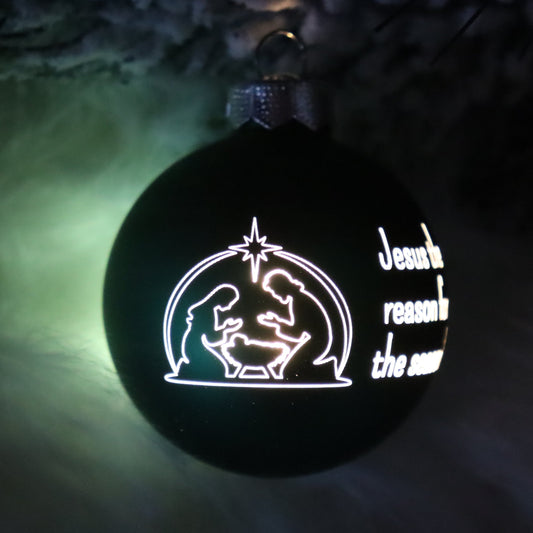 Personalisierte Weihnachtskugel mit Lasergravur „Jesus the Reason for the Season"