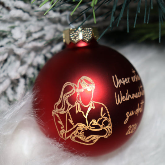 Personalisierte Weihnachtskugel „Unser erstes Weihnachten zu dritt 2025“
