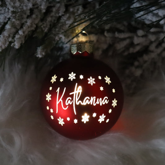 Personalisierte Weihnachtskugel mit Lasergravur „Name & Schneeflocken“