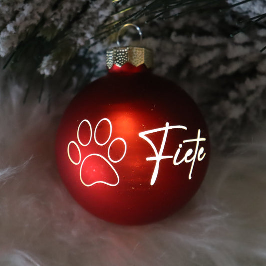 Personalisierte Weihnachtskugel mit Lasergravur „Pfote & Name“