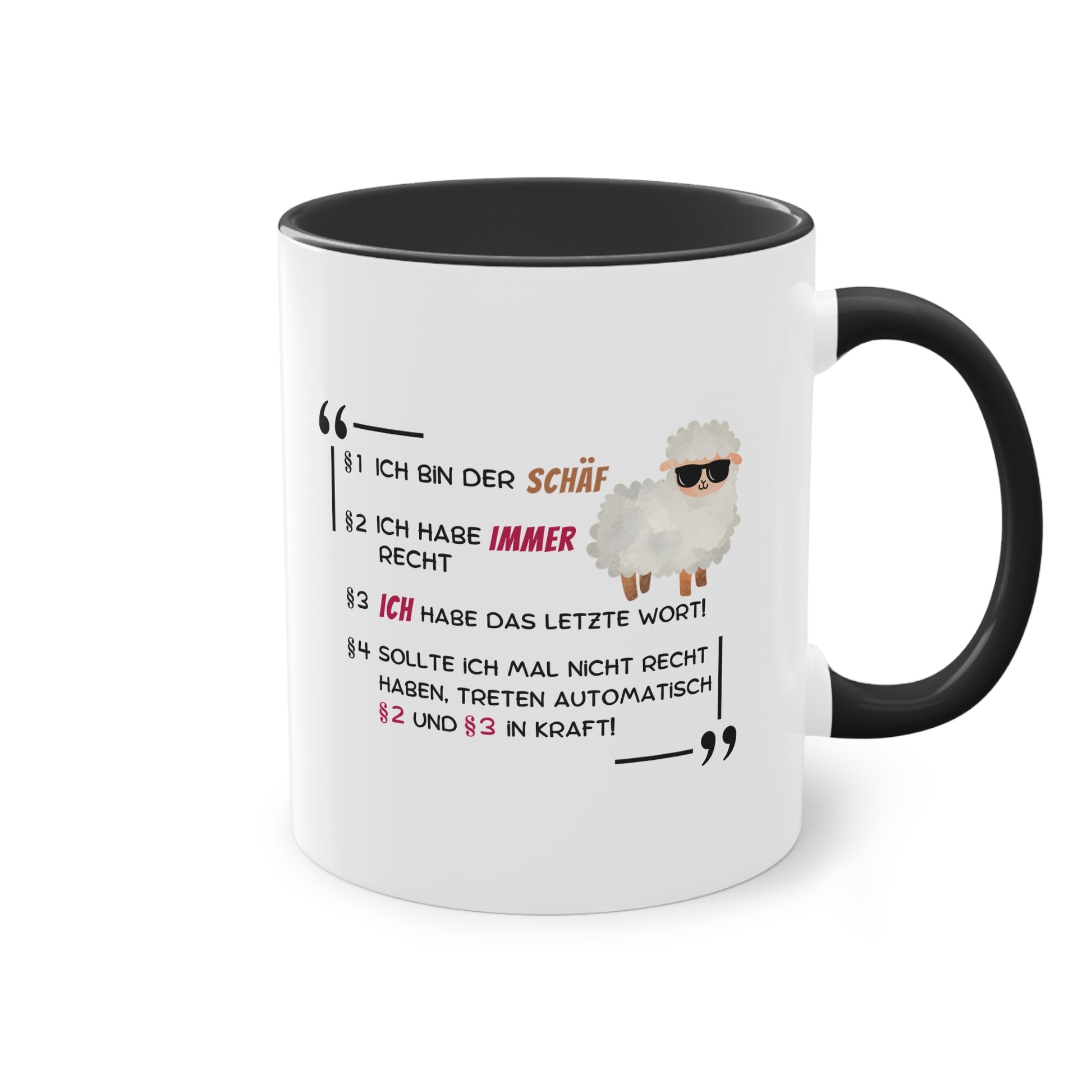 Mit der Tasse „§1 Der Schäf hat immer recht“ machst du sofort klar, wer hier das Sagen hat – mit einem Augenzwinkern und einer gehörigen Portion Stil.