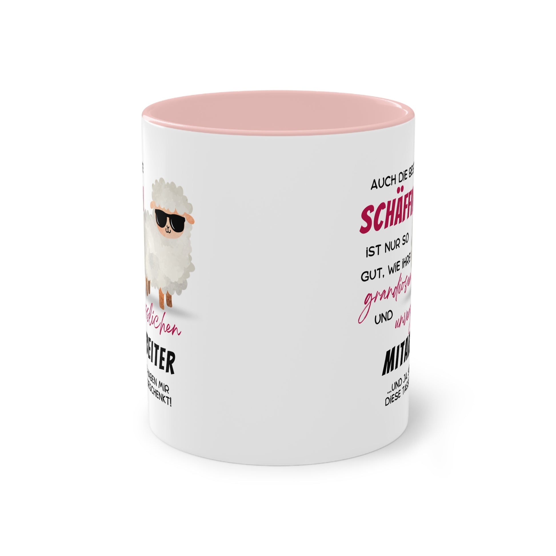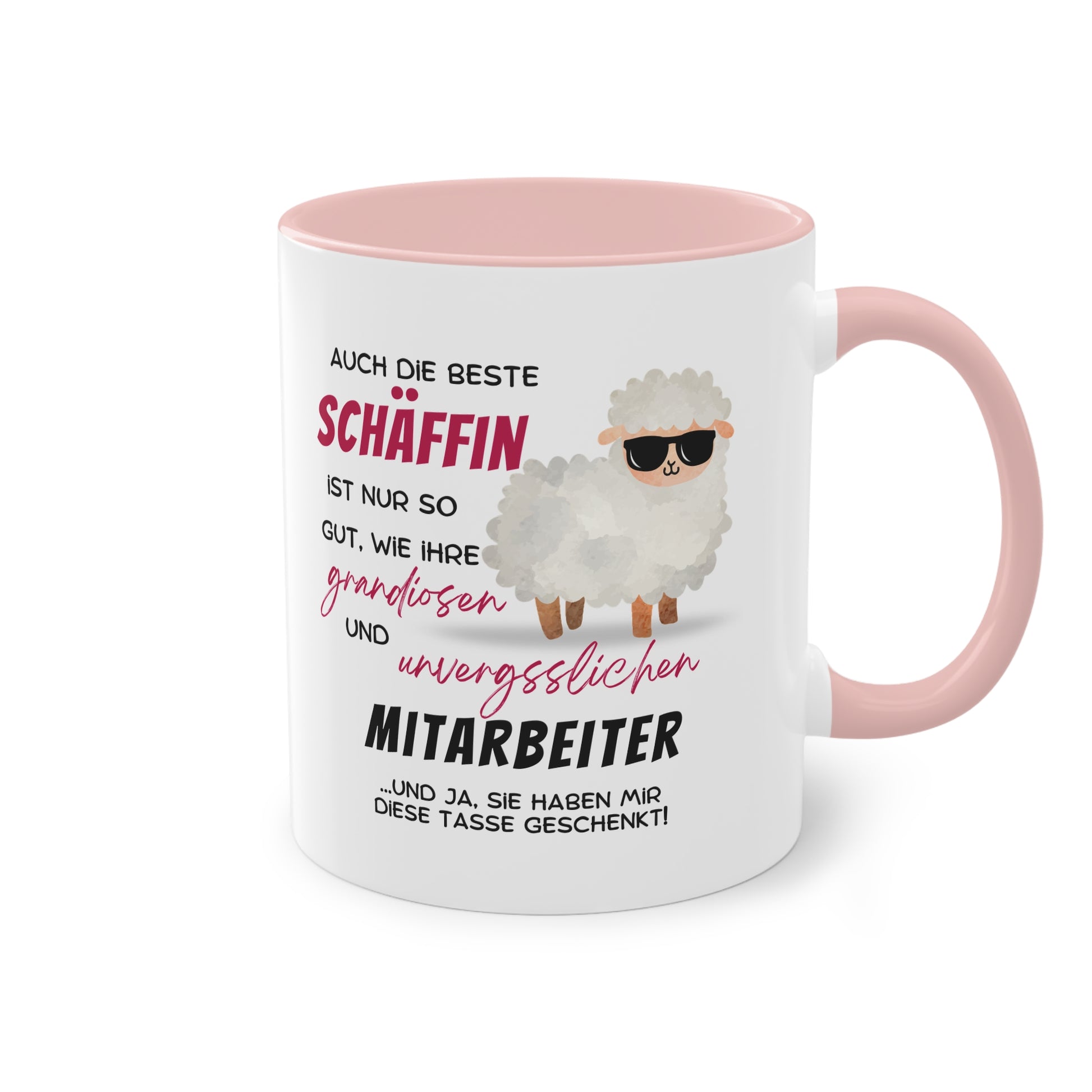 Diese stylische Tasse mit dem coolen Schaf und dem liebevollen Spruch „Auch die beste Schäffin ist nur so gut, wie ihre grandiosen und unvergesslichen Mitarbeiter" ist das perfekte Geschenk für eine besondere Frau, die Eindruck hinterlässt – mit Herz, Witz und jeder Menge Charisma.