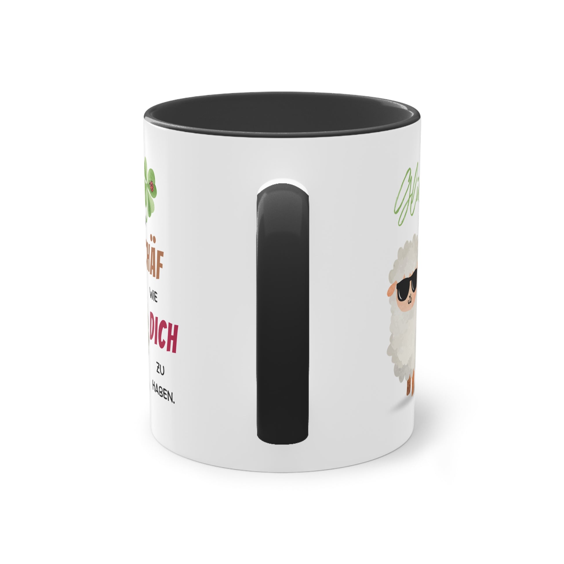 Eine liebevolle Tasse mit Augenzwinkern – perfekt für echte Glücksschäfe im Leben!