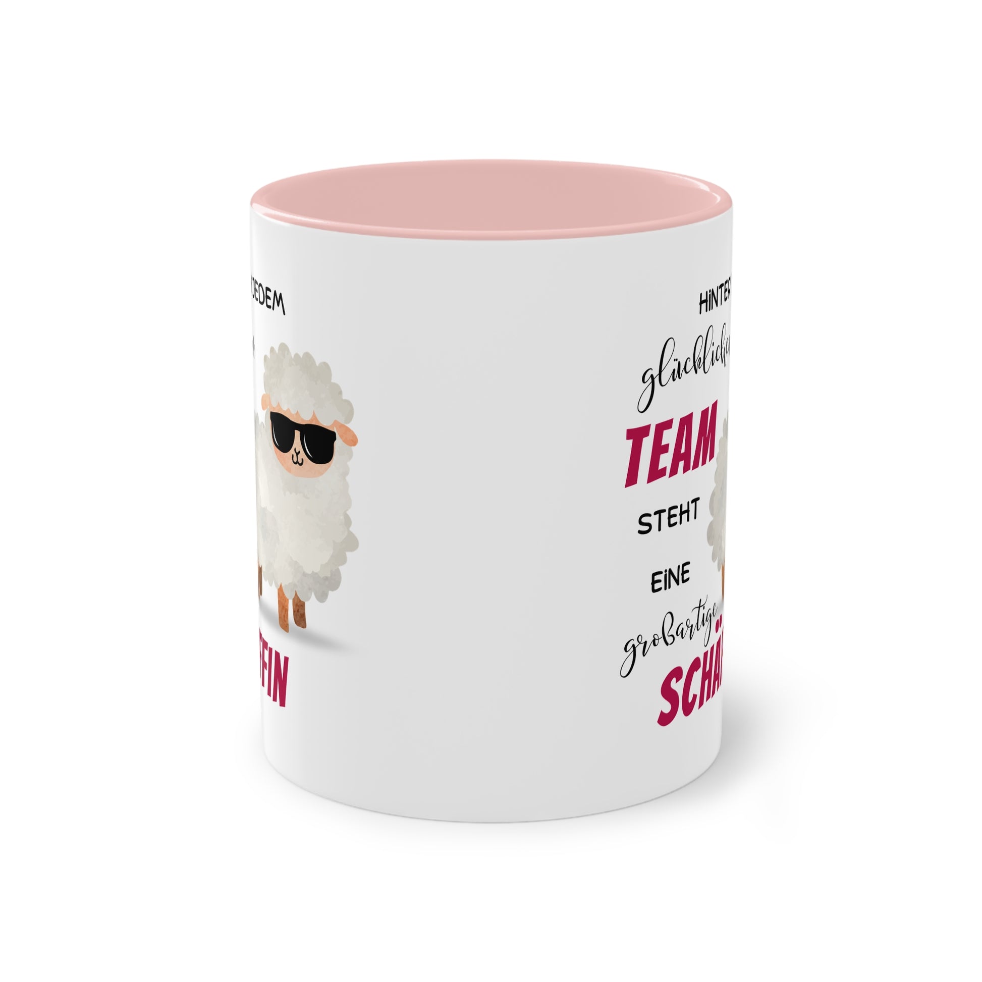 „Hinter jedem glücklichen TEAM steht eine großartige SCHÄFFIN“ – ein liebevoll gestalteter Becher mit süßem Schaf-Motiv und einer Extraportion Anerkennung.