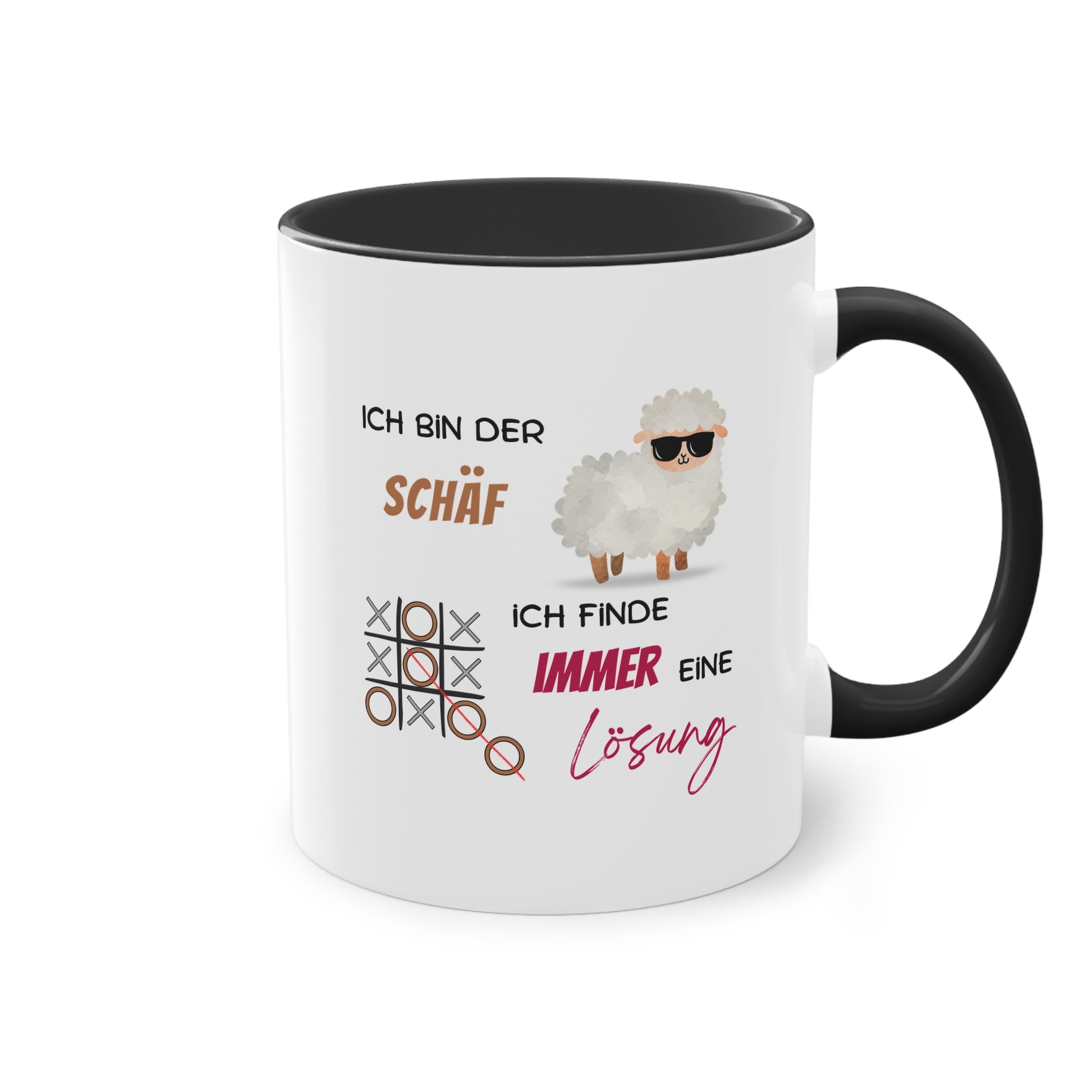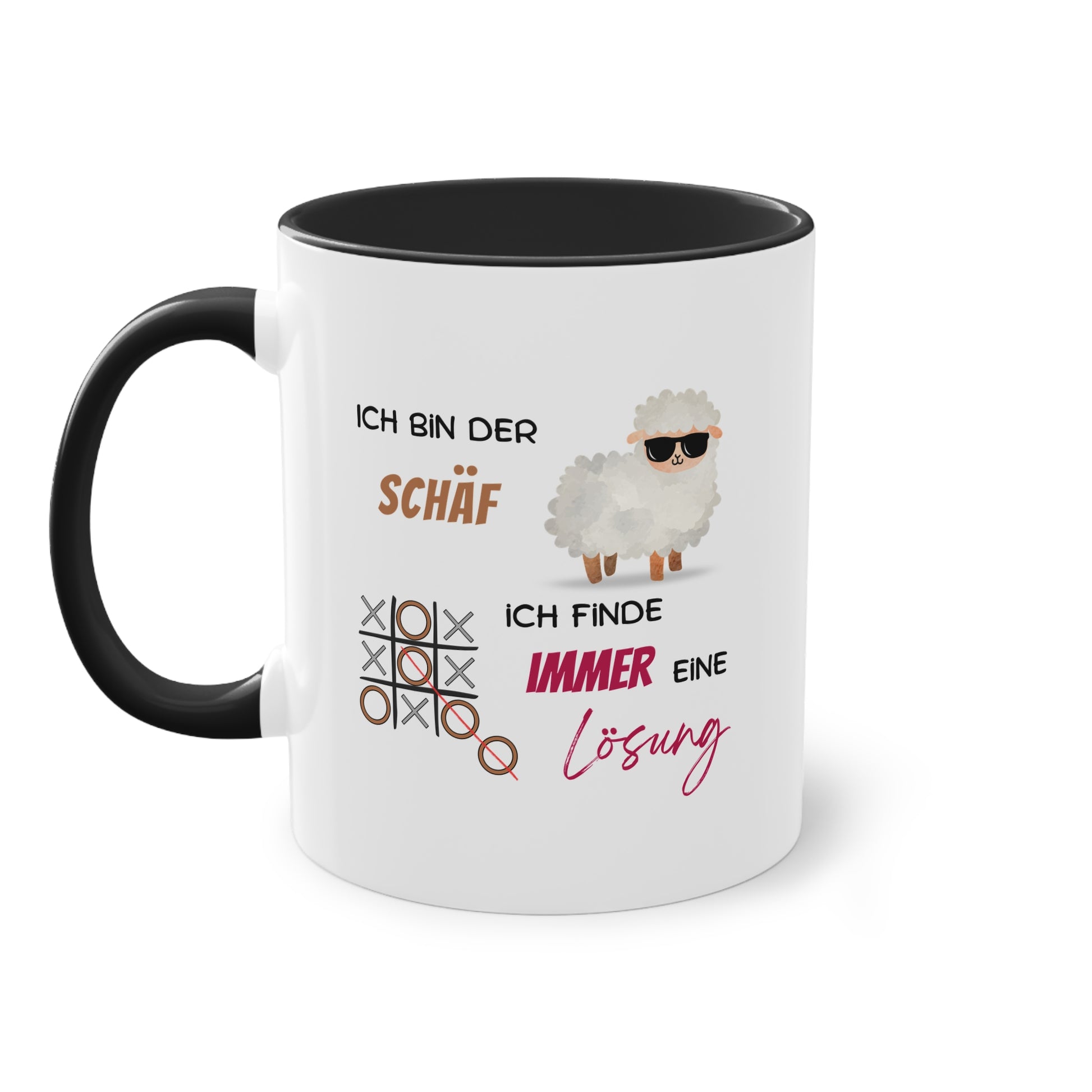 Diese originelle Tasse mit dem Spruch „Ich bin der Schäf – ich finde immer eine Lösung“